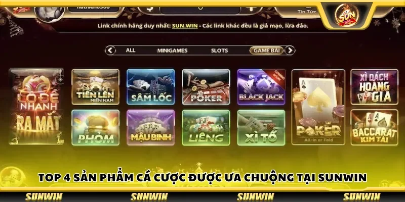 Top 4 sản phẩm cá cược được ưa chuộng tại Sunwin
